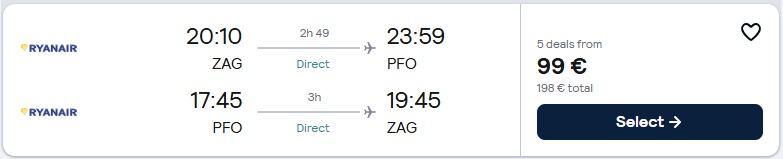 Zagreb (ZAG) – Pafos (PFO), že za 99 eur