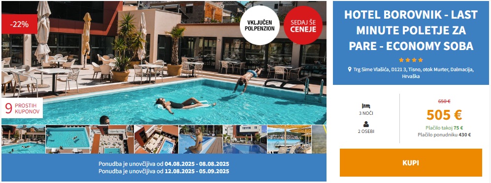 POLETNI MURTER! 3 noči s polpenzionom v Hotel Borovnik 4*že za 505 eur (2 osebi)