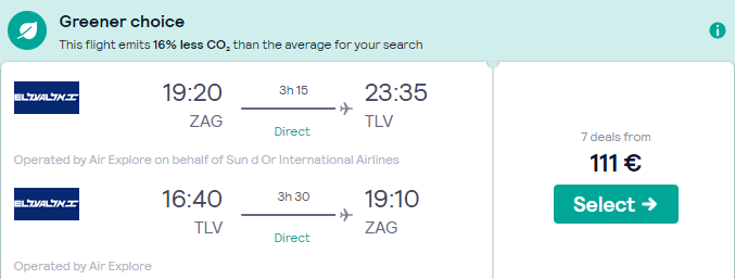 Primer povratne letalske povezave iz Zagreba v Tel Aviv (24.03. – 21.04.2020)