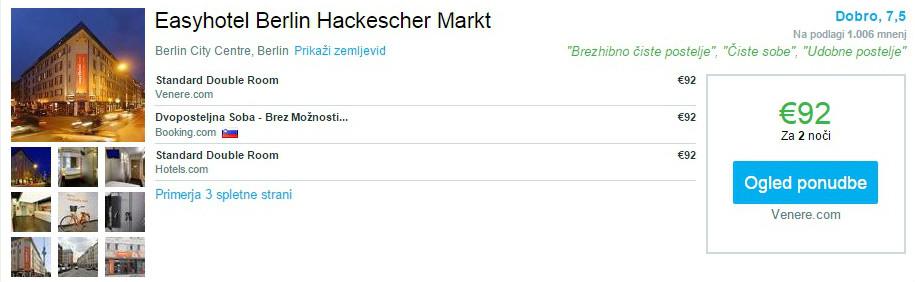 – Rezervacija hotela Easyhotel Berlin Hackescher Markt za dve osebi (2 nočitvi) za 92 eur na povezavi tukaj