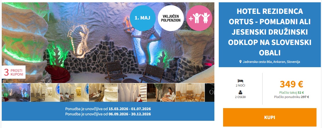 Ponudba je unovčljiva od 15. 3. do 1. 7. 2026 in od 6. 9. do 30. 12. 2026