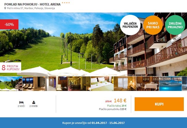 Hotel Arena je hotel kategorije štirih zvezdic, umeščen na obronke Mariborskega Pohorja. Hotel Arena svojim gostom skozi slogan »Udobje v naravi« nudi veliko sončno teraso s pogledom na snežni stadion in gozdove ter wellness center z whirlpooli, savnami, počivališčem in fitness centrom. Ponudba je zaokrožena s sodobno seminarsko dvorano (do 60 udeležencev), veliko restavracijo, a la carte restavracijo, Zimskim vrtom in lobi barom. Velike, sodobne, svetle in prijetne savne se razprostirajo na 400 m2. Na voljo so: Finska savna, Parna savna, Kromoterapevtska savna in Toplotno-sevalna infra savna in prostori za sprostitvene programe in nege obraza in telesa.