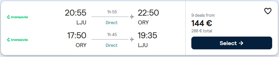 Ljubljana (LJU)- Pariz (ORY), že za 144 eur/osebo