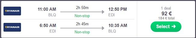 letaloBologna-Edinburgh; Ryanair, check in prtljaga ni vključena, 92 eur/osebo