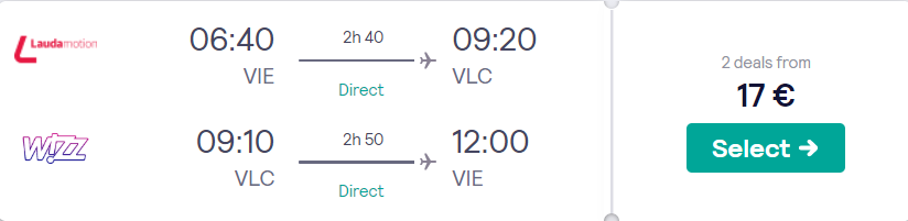 Valencija (VLC), že za 17 eur