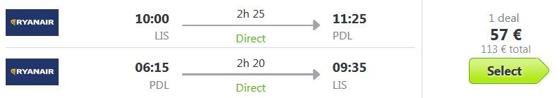 Milano – Lizbona – Ponta Delgada, Ryanair/Easyjet, 99 eur/osebo, prtljaga ni vključena