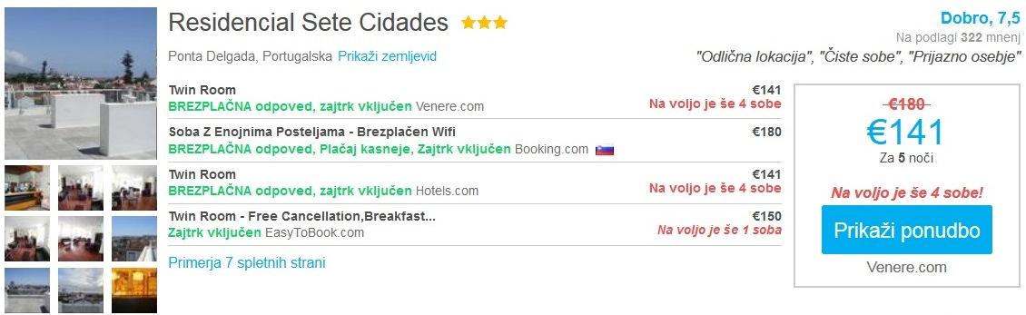 2 nočitvi v Lizboni (12.-14.12.2106), 4 nočitve na Azorih (14.-19.12.2016), 175 eur/2 osebiSkupna cena celotnega paketa 8 dnevnega dopusta za dve osebi (letalo + prenočišče) v Lizboni in na Azorih tako znaša 413 eur (oz. 207 eur na osebo).