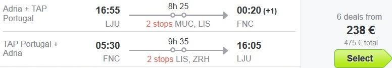 Ljubljana-Madeira, Adria/TAP, 1-2 postanka, prtljaga je vključena, 238 eur/osebo
