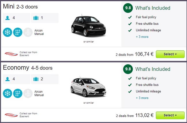 Primer ponudbe najema avtomobila na letališču v Edinburghu (07.03.-14.03.2018):