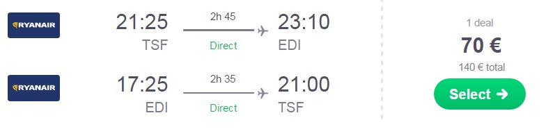Najem avtomobila na letališču v Edinburgu, že od 107 eur za 7 dniPrimer letalske povezave iz Benetk v Edinburgh (07.03.-14.03.2018):