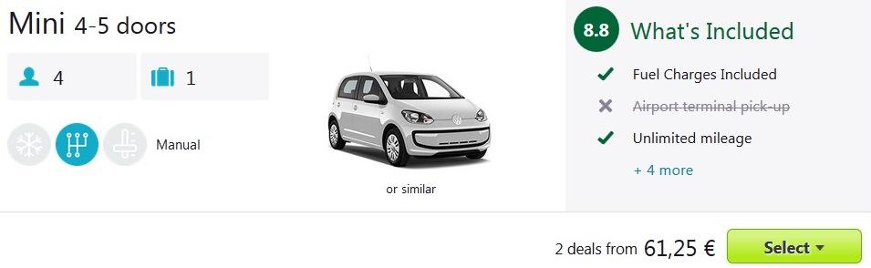 Najem avtomobila na letališču v Dublinu, že od 62 eur za 7 dniSkupna cena celotnega paketa 8 dnevnega dopusta za dve osebi (letalo + avtorent) na Irskem tako znaša 184 eur (oz. 92 eur na osebo).
