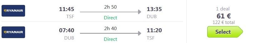 Benetke-Dublin; Ryanair, prtljaga ni vključena, 61 eur/osebo