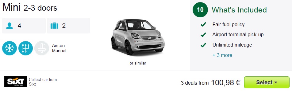 Najem avtomobila v Kopenhagnu, že od 101 eur za 7 dniSkupna cena celotnega paketa 8 dnevnega dopusta za dve osebi (letalo + avtorent) na Danskem, tako znaša 212 eur (oz. 106 eur na osebo).