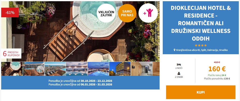 Ponudba je unovčljiva od 30. 10. do 23. 12. 2025 in od 6. 1. do 31. 3. 2026
