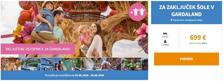 3x nočitev v bližini Gardalanda za 2 odrasli osebi in 2 otroka do 11,99 let (glede na razpoložljivost in povpraševanje)