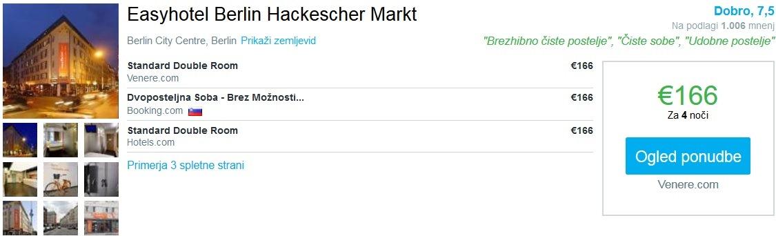 – Rezervacija hotela s 3*Easyhotel Berlin Hackescher Markt za dve osebi (4 nočitve) za 166 eur na povezavi tukaj
