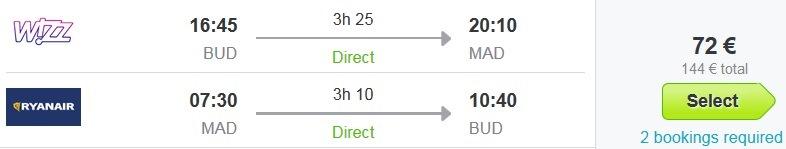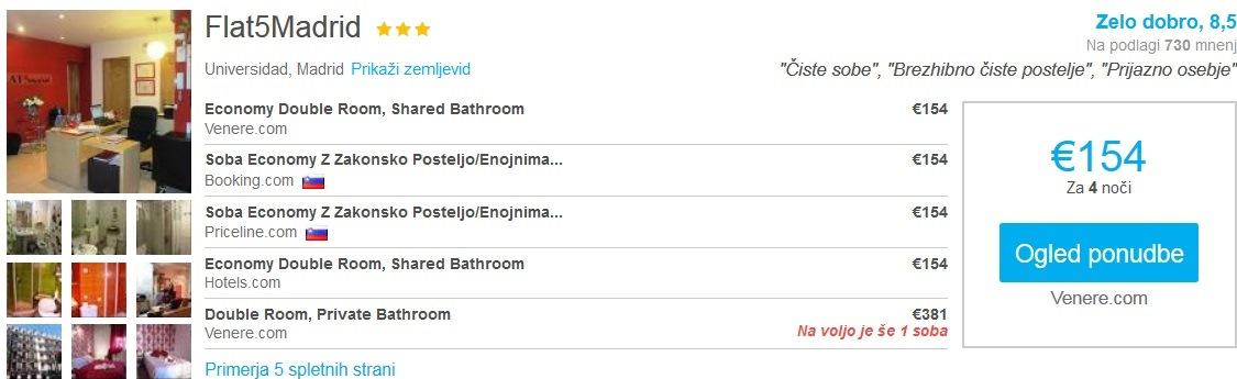 Budimpešta- Madrid, Ryanair/Wizzair, prtljaga ni vključena, 72 eur/oseboPrimer hotelske namestitve v Madridu (14.10.-18.10.2016):