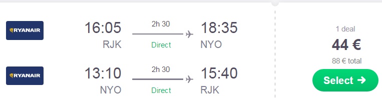 Rijeka – Stockholm, Ryanair, prtljaga ni vključena, 44 eur/osebo