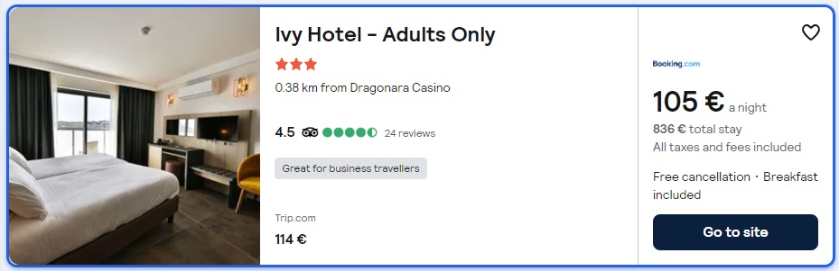 8 noči, Paceville; 30.04.-08.05.2024, Ivy Hotel, od 836 eur/2 osebi/zajtrk/brezpl.odpoved
