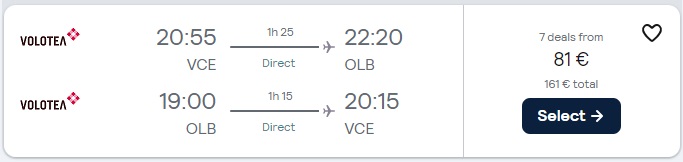 Benetke (VCE) – Olbia (OLB), že za 81 eur