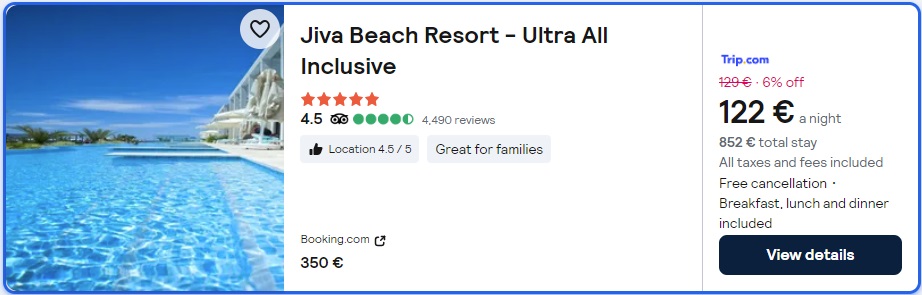 Seštevek cene primera paketa (letalo + nastanitev) za 7 noči bivanja na Turški obali tako znaša 1012 eur za dve osebi (oz. 506 eur na osebo).