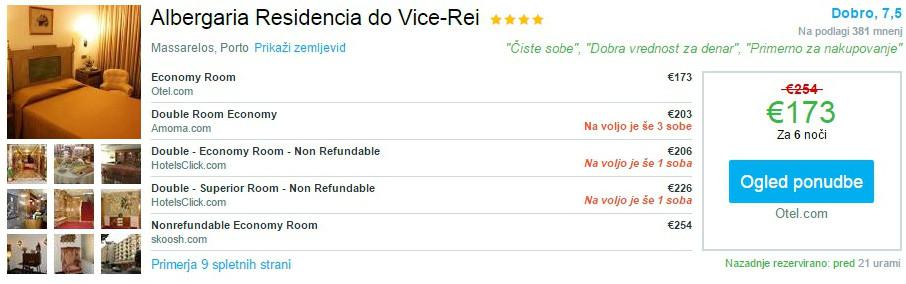 V Portu je na voljo 6 nočitev (za termin 28.04.-04.05.2016) v dobro ocenjenem hotelu s 3*Albergaria Residencia do Vice-Rei, kjer je cena za dve osebi že od 173 eur.