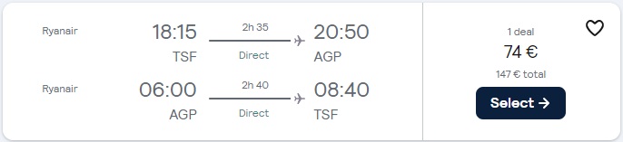 Treviso (TSF) – Malaga (AGP), že za 74 eur
