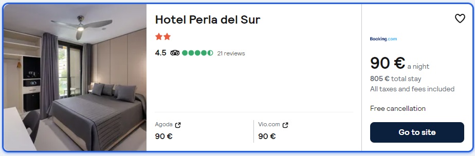 Seštevek cene primera paketa (letalo + nastanitev) za 9 noči bivanja na obali v bližini Malage tako znaša 953 eur za dve osebi (oz. 477 eur na osebo).
