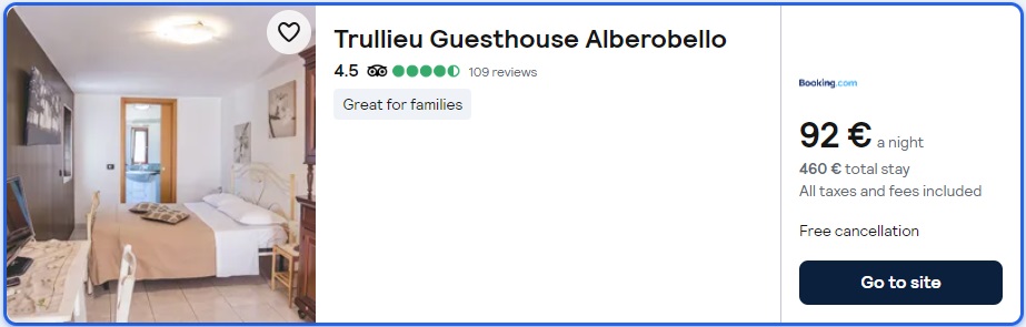 Primer ponudbe nočitev v mestu Alberobello