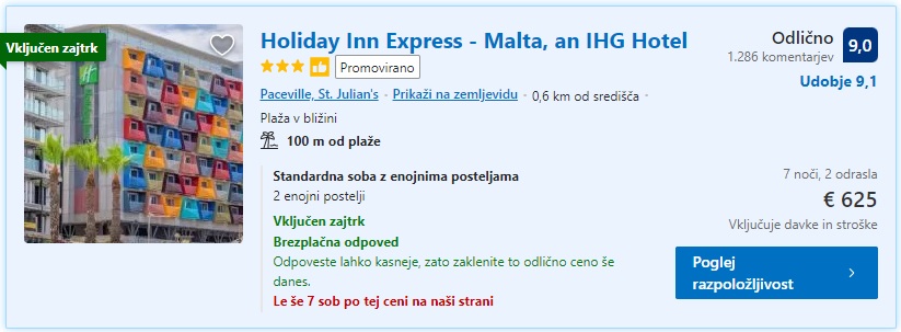 7 noči, 26.04.-03.05.2022, Holiday Inn Express, St.Julians, od 625 eur/2 osebi