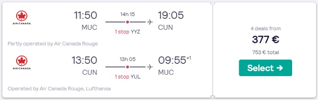 Munchen (MUC) – Cancun (CUN), že za 377 eur