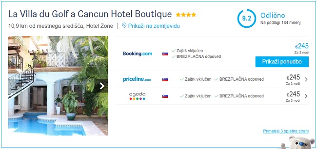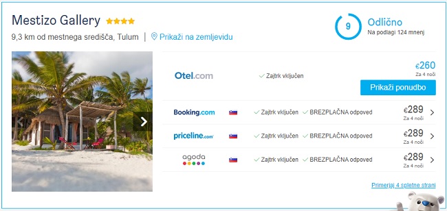 Skupna cena celotnega paketa 11 dnevnega dopusta za dve osebi (letala + nastanitve) v Mehiki tako znaša 1455 eur (oz. 727 eur na osebo).