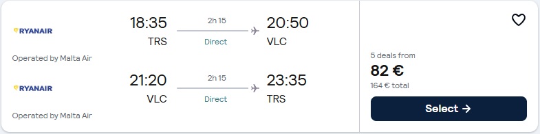 Trst (TRS) – Valencia (VLC), že za 82 eur