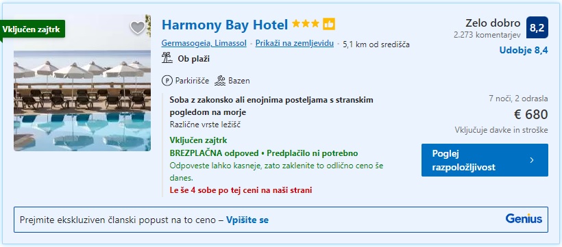 Primer ponudbe nočitev na Cipru