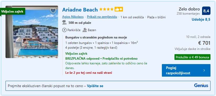 10 noči Agios Nikolaos (22.04.-02.05.2022), Ariadne Beach, od 701 eur z zajtrkom/2 osebi