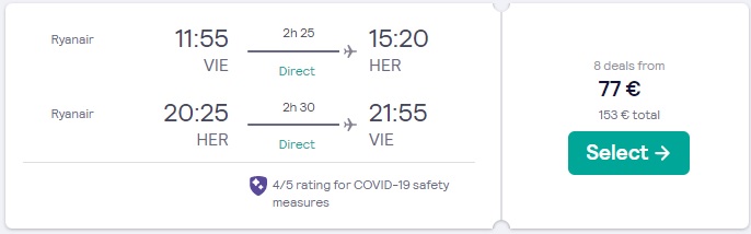 Dunaj (VIE) – Heraklion (HER), že za 77 eur