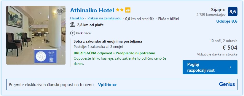 10 noči Heraklion (22.04.-02.05.2022), Athinaiko Hotel, od 504 eur/2 osebi