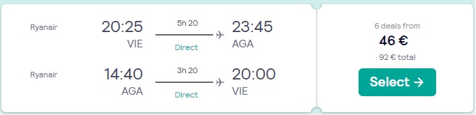 Dunaj (VIE) – Agadir (AGA), že za 46 eur