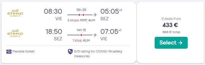 Dunaj (VIE) – Mahe (SEZ), že za 433 eur