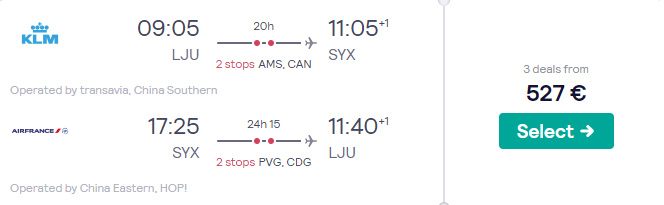 Sanya (SYX), že za 527 eur