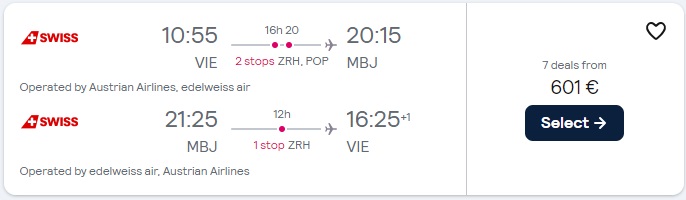 Primeri povratnih letalskih kart z Dunaja:
