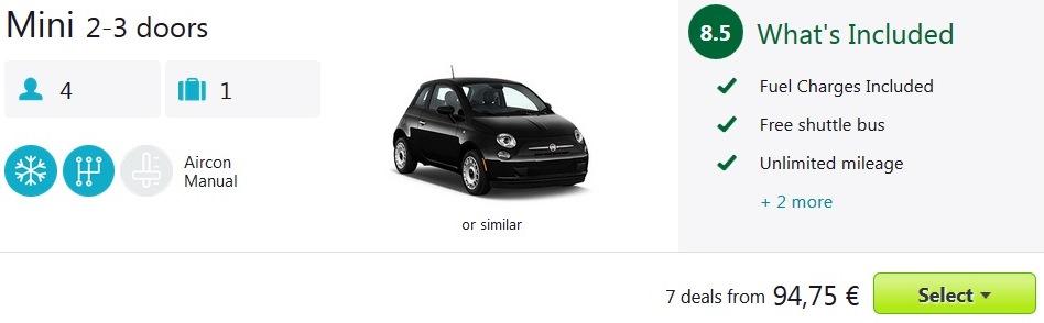 Benetke – Palermo; Ryanair; Najem avtomobila na letališču v Palermu, že od 94 eur za 5 dniSkupna cena celotnega paketa 6 dnevnega dopusta za dve osebi (letalo + avtorent) na Siciliji, tako znaša 231 eur (oz. 116 eur na osebo).
