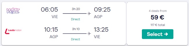 Dunaj (VIE) – Malaga (AGP), že za 59 eur