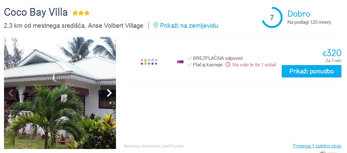 7 nočitev na Sejšelih, Coco Bay Villa, termin 25.04.-02.05.2018, 320 eurPrimer povratne letalske povezave iz Benetk na Sejšele (24.04.-02.05.2018):