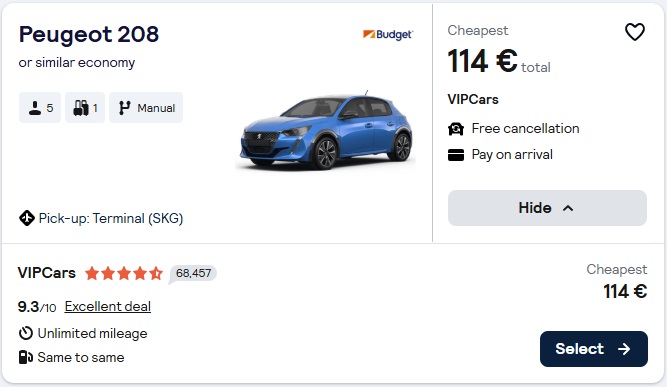 Najem avtomobila v Solunu (27.04.-04.05.2026)