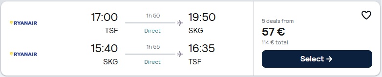 Treviso (TSF) – Solun (SKG), že za 57 eur