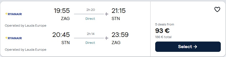 Zagreb (ZAG) – London (STN), že od 93 eur