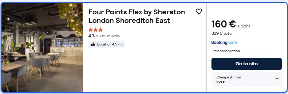 4 noči, 28.04.-02.05.2026, Four points Flex by Sheraton London Shoreditch East, od 639 eur/2 osebi