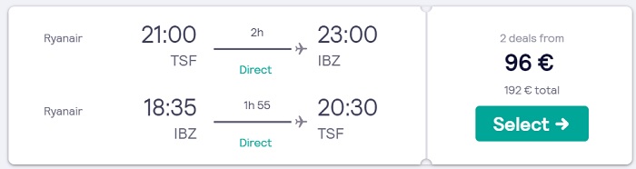 Treviso (VCE) – Ibiza (IBZ), že za 96 eur