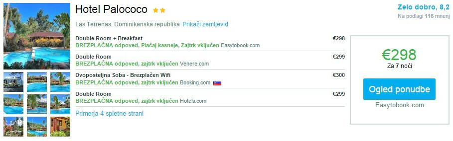 V Dominikanski Republiki (predel Las Terrenas) je na voljo 7 nočitev (za termin 16.3.-23.3.2016) v zelo dobro ocenjenem hotelu Hotel Palococo z zajtrkom že od 298 eur na osebo.